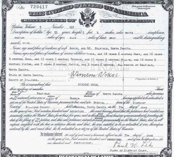 • He was naturalized on 7 June 1917 in Medora, Billings, North Dakota. 265