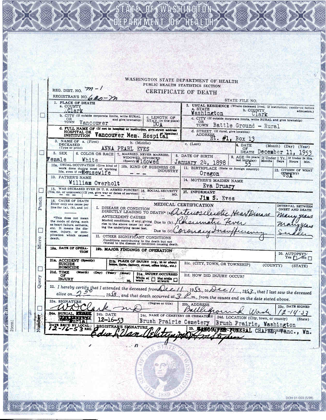 Died: 11 December 1953 - Battle Ground, Clark, Washington 140